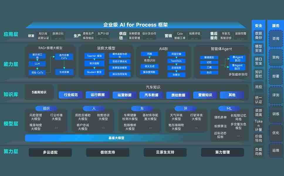 端到端的一站式AI工作空间深度融合了从企业战略规划到日常经营的全流程业务板块,,,定向解决车企内部领域多、、、部门多、、、链条长、、场景碎片化等难题,,,,支持车企快速构建以AI为核心的生产力写作体系,,,,实现任务执行与AI能力的无缝集成与交互